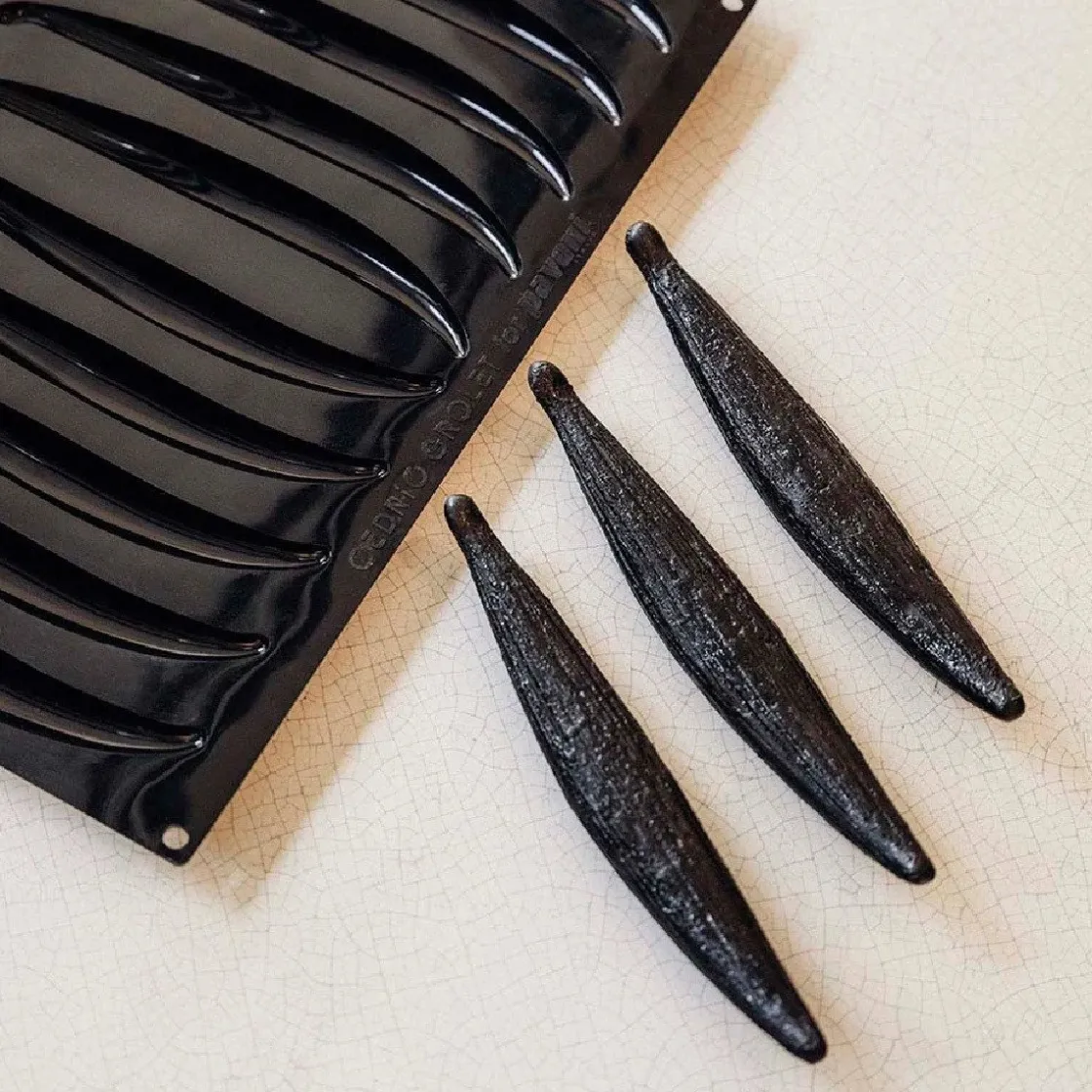 De Pavoni Siliconen Vorm Vanille 225x32mm (10) 30x40cm is ontwikkeld in samenwerking met patissier Cedric Grolet. Deze hoogwaardige siliconenvorm bevat 10 holtes van elk 22,5 centimeter lang en 3,2 centimeter breed.