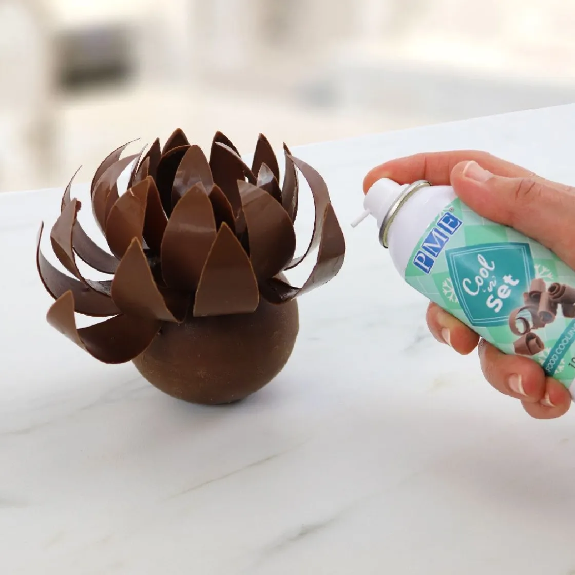 Deze PME Cool & Set Spray is een handige voedselkoelspray. Perfect voor het snel en effectief uitharden van gesmolten chocolade en andere delicate decoraties. Ideaal voor het direct fixeren van fijne chocoladesculpturen.
