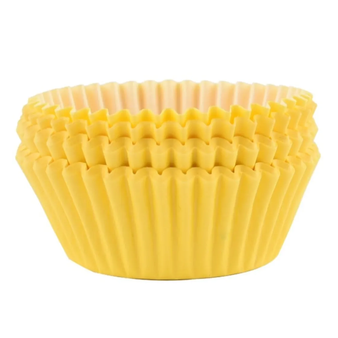 Kanariegeel, dat zijn deze cupcake cups van het merk PME. Door cupcakes te bakken in deze papieren cups zien ze er meteen vrolijkheid uit. De cups zijn gemaakt van voedselveilig papier, met een kleur die zich weerhoud in de oven (bij gebruik van basis deeg). Om de cups mooi in vorm te houden is het aan te houden een muffinbakvorm te gebruiken.