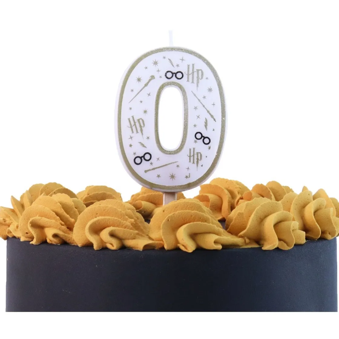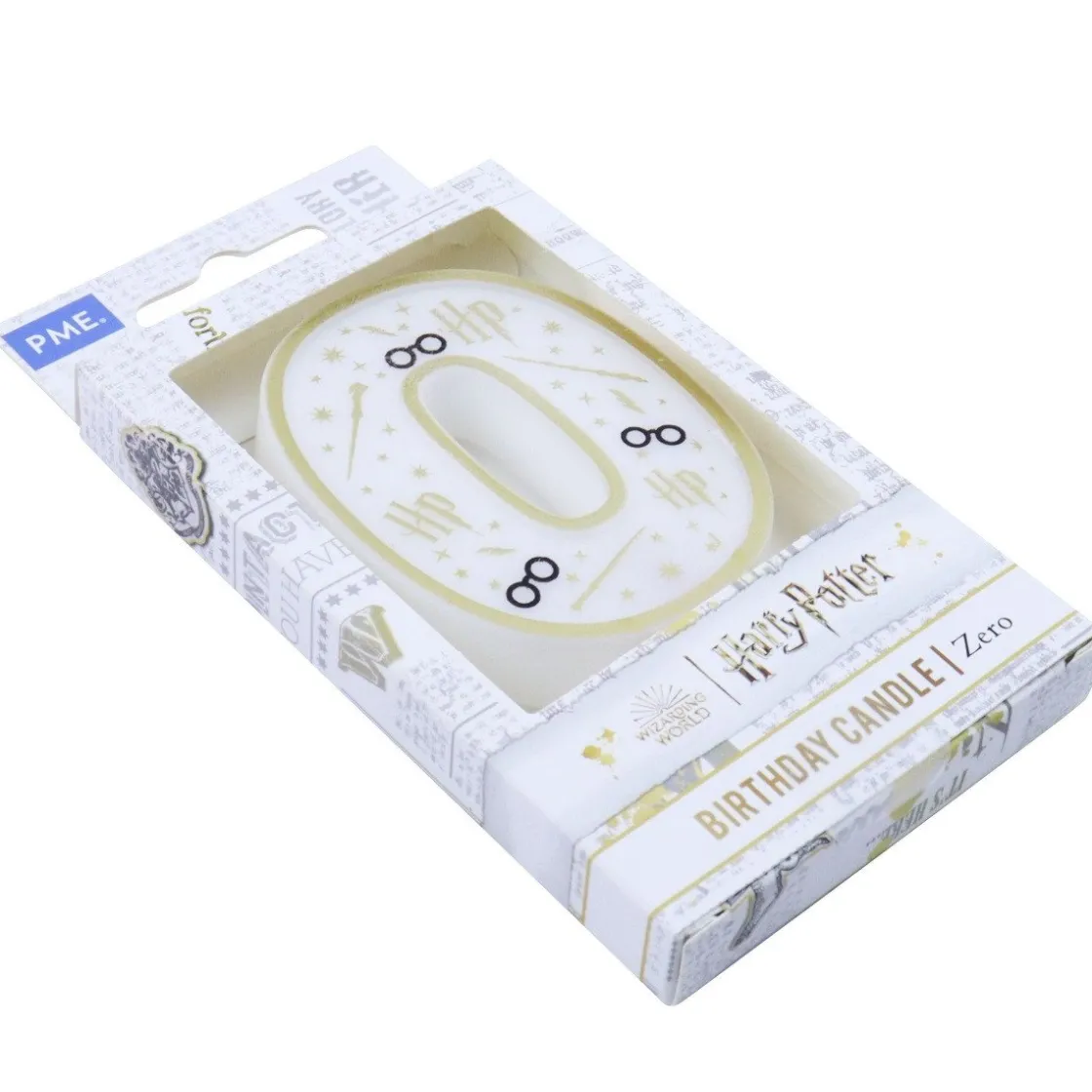 Ben jij een Harry Potter fan? Dan is dit PME Harry Potter Taartkaarsje 0 fantastisch voor jou! Dit kaarsje heeft een witte ondergrond, met daarop gouden symbolen van Harry Potter. Natuurlijk is de zwarte bril van Harry Potter ook afgebeeld op de kaars. De kaars heeft een afmeting van 5,3 cm bij 7 cm, dit is exclusief de houtenprikker. Dit taartkaarsje is een geweldige decoratie op een Harry Potter verjaardagstaart of Harry Potter cupcakes.