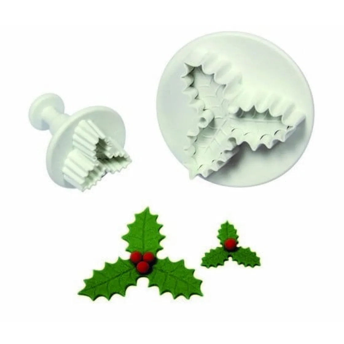 Plunger Cutter Veined Three Leaf Holly, set van 2
