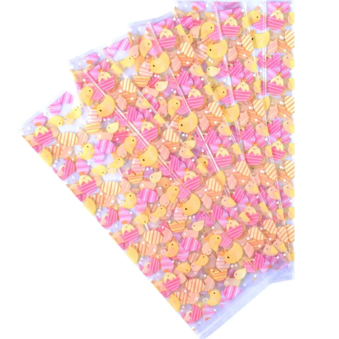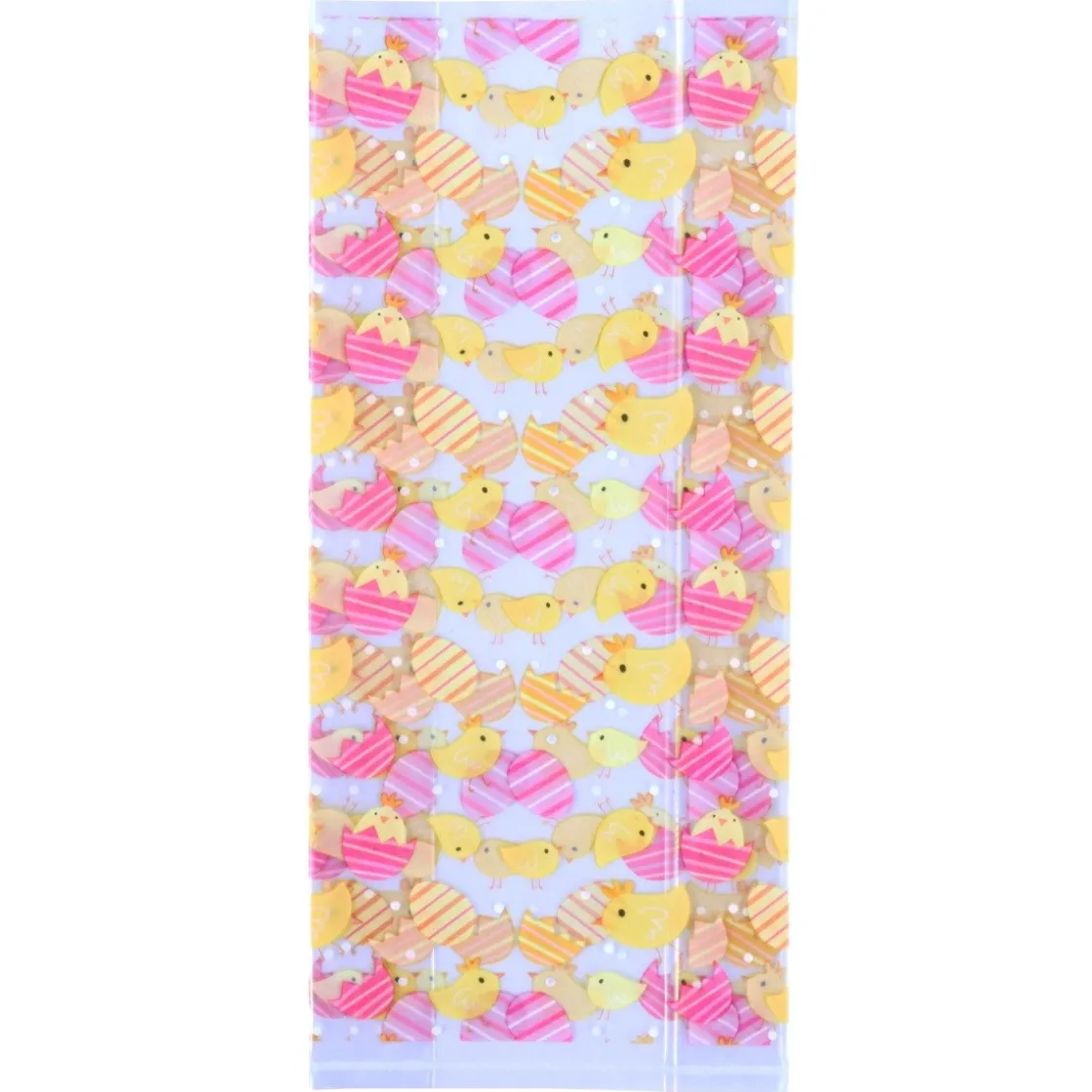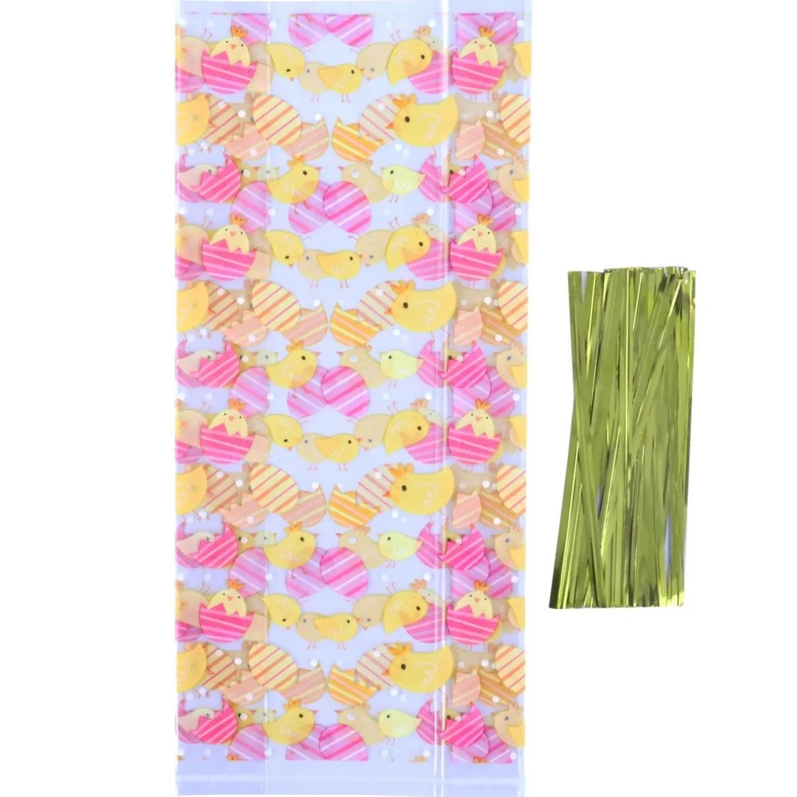 De PME Traktatiezakjes Paaskuikens 20st zijn transparante zakken met daarop versieringen van kuikens en eieren. Elke zak heeft een afmeting van 15,2 bij 24,1 centimeter en de verpakking bevat 20 stuks. Bovendien worden de zakken geleverd met sluitclips.