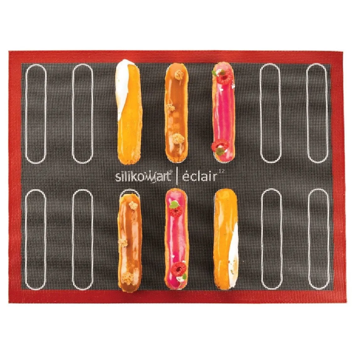 Deze bakmat air kan gebruikt worden voor koekjes, brood en dergelijke. Maar is uitermate geschikt voor het bakken van éclairs en soezen. Op de bakmat zijn namelijk de vormen van deze lekkernijen weergegeven. Op deze manier kun je eenvoudig allemaal gelijke baksels creëren.