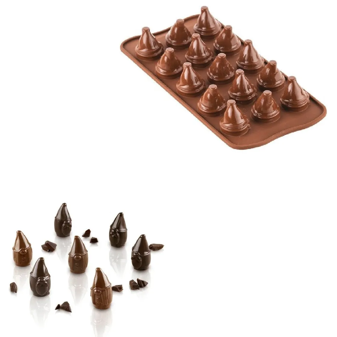 Met de Silikomart Siliconen Bonbonvorm Mr&Mrs Brown (15x) Ø2,5x4cm maak je schattige kabouterbonbons. De vorm biedt ruimte voor 15 bonbons van 2,5×4 centimeter. Geschikt voor gebruik in de oven, vriezer en koelkast.