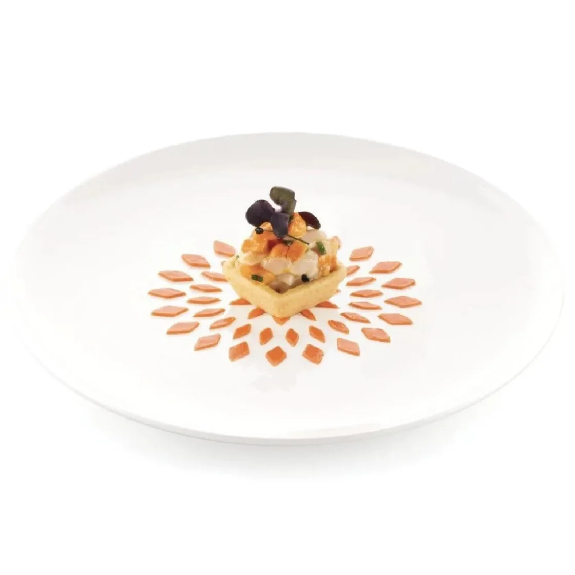 De Silikomart Siliconen Stencil Lotusbloem Ø10×0,1 cm Set/2 is een sjabloon in de vorm van een lotusbloem, waarmee je jouw baksels en desserts geweldig kunt decoreren. Deze set bevat 2 siliconen stencils met een diameter van 10 centimeter. Ideaal voor het aanbrengen van decoratieve patronen met poedersuiker of cacaopoeder. Ook geschikt voor het aanbrengen van sprays, airbrush of chocolade op baksels.