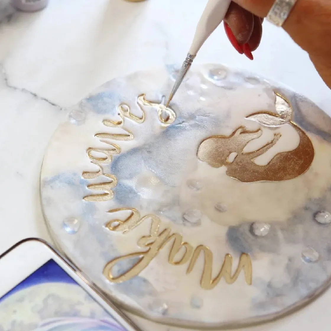 De Sweet Stamp Mystic Mermaid Elements bestaat uit allerlei figuren, waarmee je als het ware kunt stempelen in fondant. Leg een element op een vlak stukje fondant en druk met bijvoorbeeld een Pickup Pad of een ander vlakke tool het element in de fondant. Haal het element weer van de fondant af en je zult zien dat er een figuur in het fondant zichtbaar is. Indien gewenst, kun je het figuur inkleuren met bijvoorbeeld foodpaint of eetbare inktstiften.