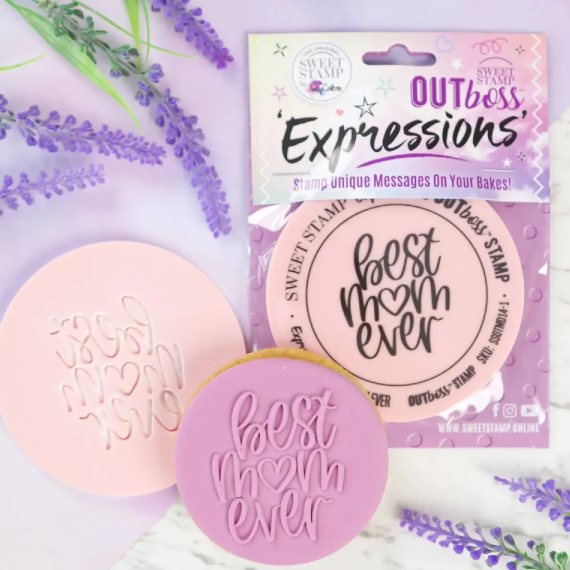 Met de Sweet Stamp Outboss Best Mom Banner wordt het heel gemakkelijk om mooie 3D-opdrukken te maken op onder andere sugar paste, fondant, gumpaste en modelleer chocolade. Het is bijvoorbeeld heel erg leuk om met dit artikel cupcakes en koekjes te versieren voor Moederdag. Een OUTBoss™ is het tegenovergestelde van een Sweet Stamp element. Waar je met een element cijfers, letters en symbolen in bijvoorbeeld fondant drukt, lijkt het met een OUTBoss™ juist alsof cijfers, letters en symbolen op het fondant zijn geplakt. Echter komt bij het gebruiken van een 3D-opdruk met een Outboss™ geen eetbare lijm kijken. De Outboss™ heeft het perfecte formaat om opdrukken te maken die precies op middelgrote koekjes en cupcakes passen. Je kunt eventueel apart een PickUpPad bestellen om het voor jezelf nog makkelijker te maken om dit product te gebruiken, deze is niet bij dit product inbegrepen.