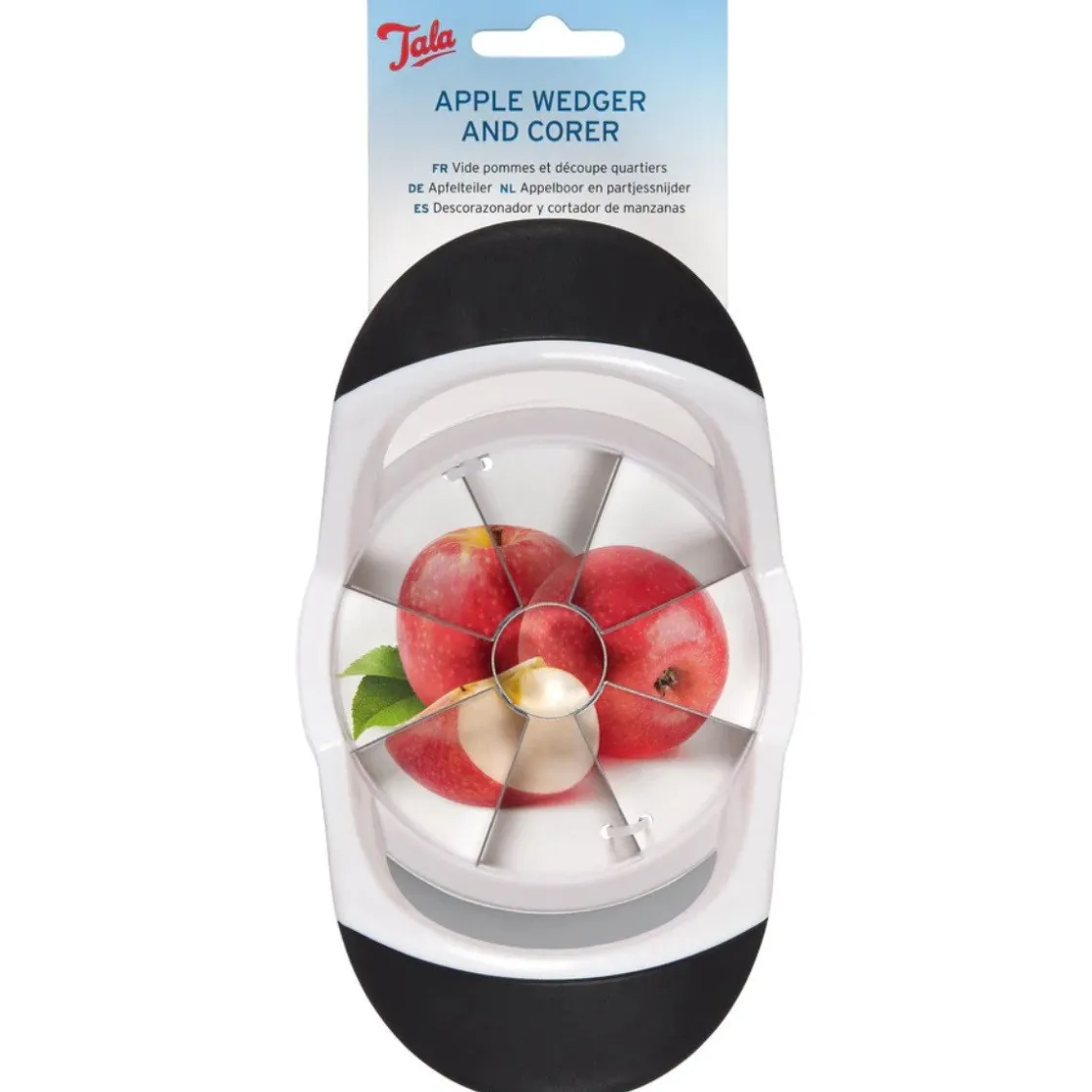 De Tala Appelsnijder is een handige tool voor in de keuken. Niet alleen verwijdert de snijder het klokhuis, maar deze verdeelt de appel ook meteen in partjes. Dankzij de handgrepen heb je een fijne grip en is het fruit makkelijk te snijden. Ook voor het snijden van andere soorten fruit en zelfs diverse soorten groenten is deze appelsnijder geschikt.