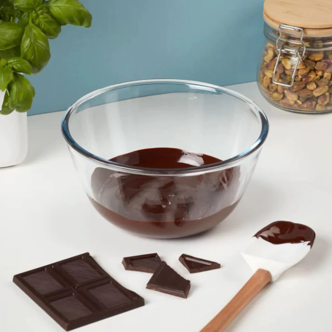 De Tala Beslagkom Glas 1,6L (Ø19cm) is ideaal voor dagelijks gebruik. Het materiaal van de kom is extra sterk en kan zowel tegen kou als warmte. Ideaal voor het mixen van degen en beslagen, maar ook bijvoorbeeld voor het smelten van chocolade. Het glas kan namelijk verwarmd worden tot 240°C. Bovendien is de kom vaatwasser, vriezer en oven bestendig.