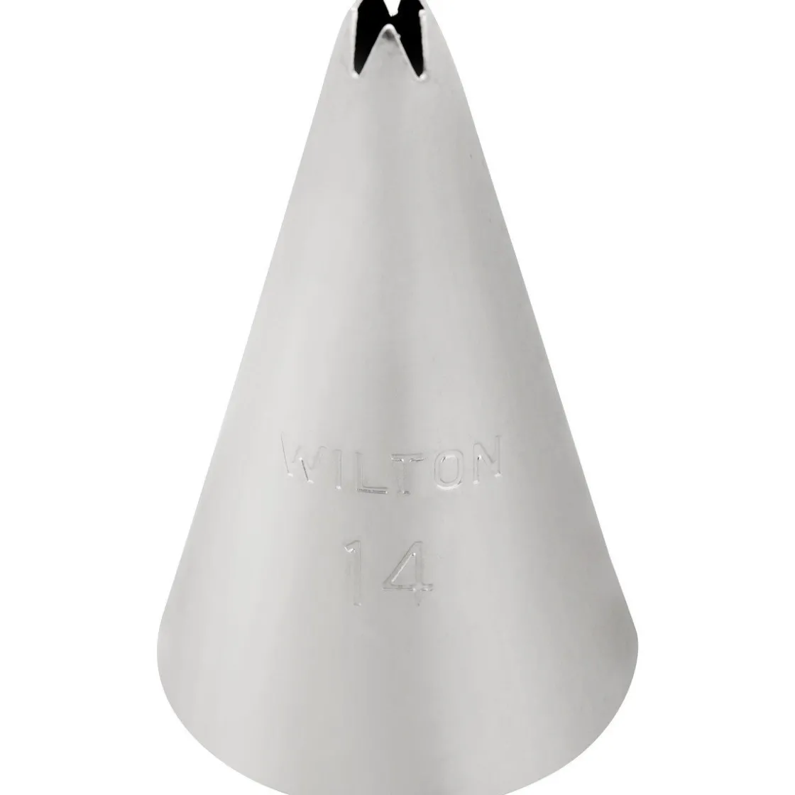 Metalen spuitmondje van het merk Wilton te gebruiken bij het maken van sterren, dropflowers en gekartelde randjes. Het spuitmondje is gemaakt van roestvrijstaal en dus geschikt voor de vaatwasser.