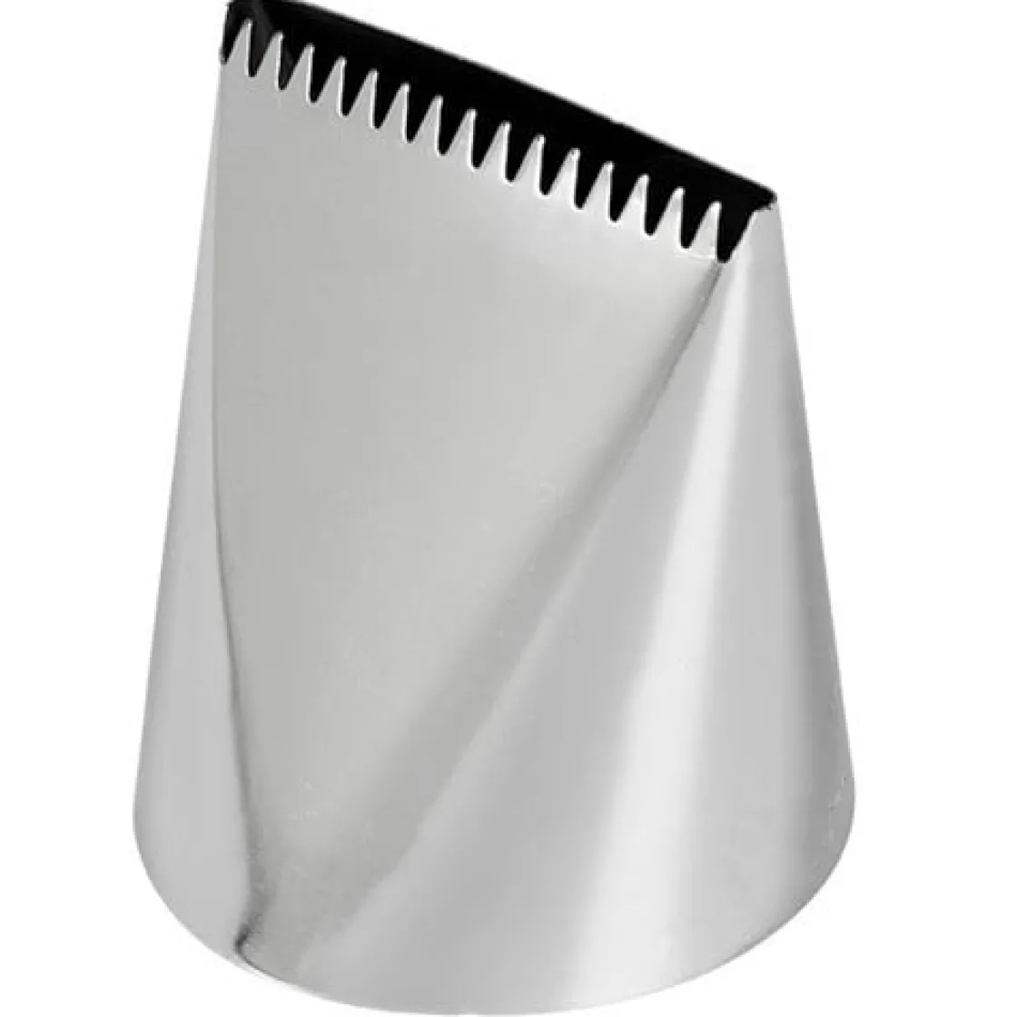 Werk je taarten en/of cakes perfect af met deze spuitmond van het merk Wilton. Geef je topping een strakke of geribbelde uitstraling, met de platte of geribbelde sluitopening. De spuitmond is geschikt voor een zelf op maat te maken spuitzak, het past namelijk niet op een adapter.